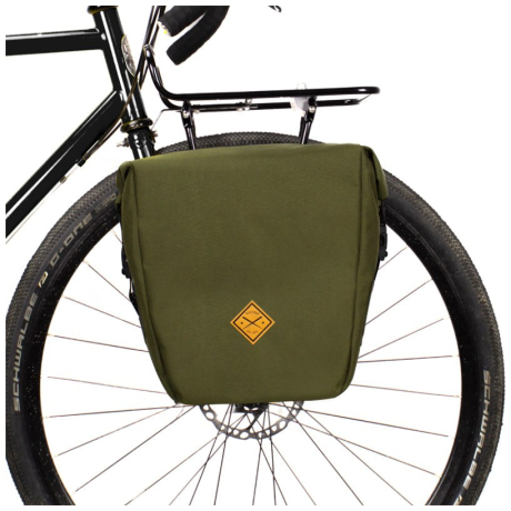 Our sleek roll-top panniers are designed for strength, stability and endurance. Available in small and large for both rear and front racks, they're fitted with side-release buckles and contain a fully adjustable hook system for easy mounting onto 10-16mm rails.Reflective detailing enhances your safety, whilst their 100% waterproof materials ensure their contents remain dry and secure. The large pannier also has space for a clip-in laptop sleeve. Check out the sleeve here.Hand made in our Yorkshire workshop, all bags are finished with the classic Restrap label, made from vegan-friendly PU.Weight - 657g/831g (small/large)Capacity - 13L/22L (small/large)100% WATERPROOFTEXTURED NYLON OUTERTAPE SEALED CONSTRUCTIONKLICKFIX FITTING SYSTEM