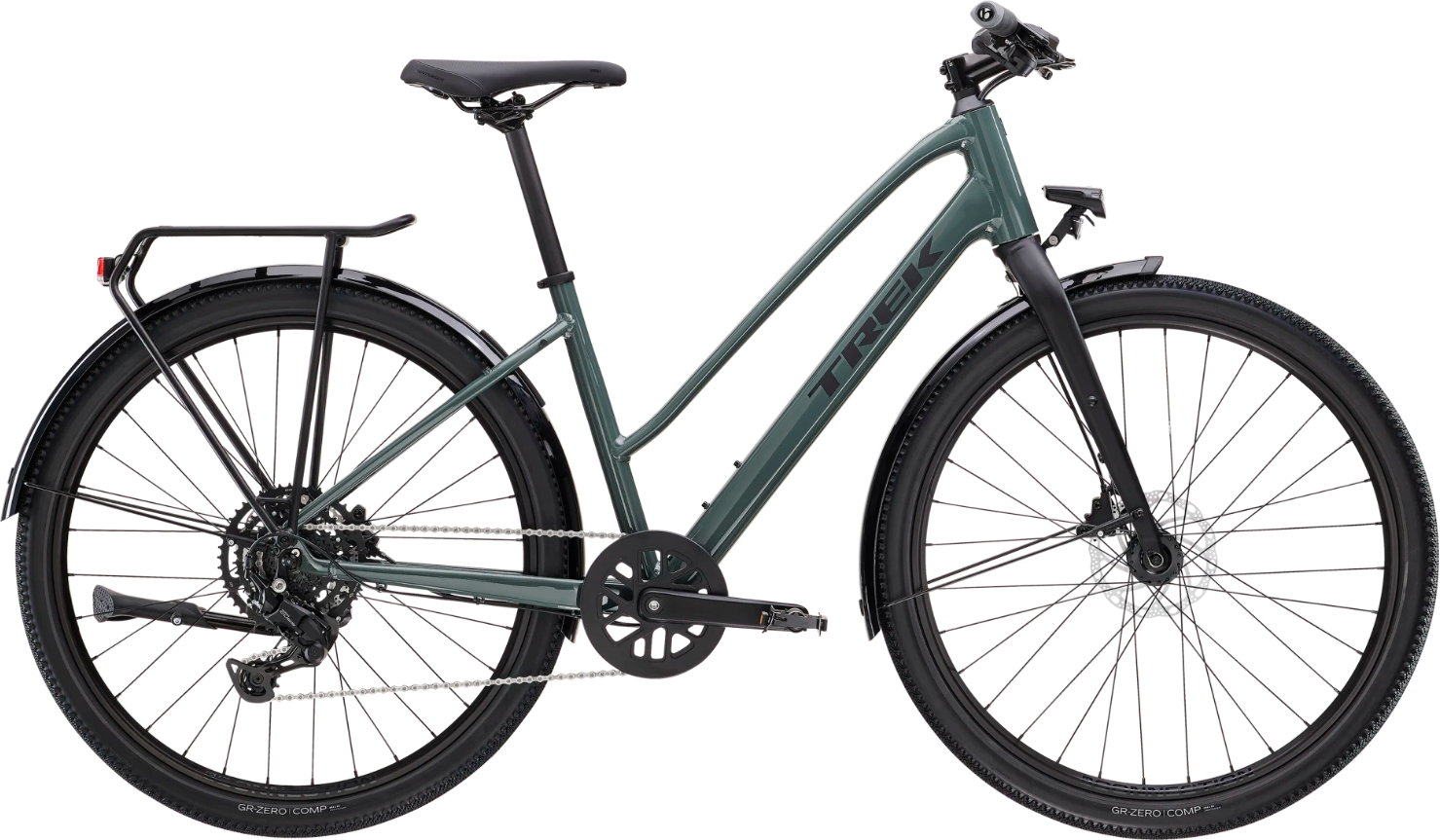 The Dual Sport 2 Mid-step is a capable go-anywhere hybrid bike that's fun to ride on a variety of surfaces. It has a lightweight lowstep frame, a sturdy drivetrain and loads of ride-ready accessories like a rear rack and lights. Its wide wheels and tyres soak up bumps and rough-terrain for a comfortable, confident ride on the road, light gravel trails, bike paths and more.