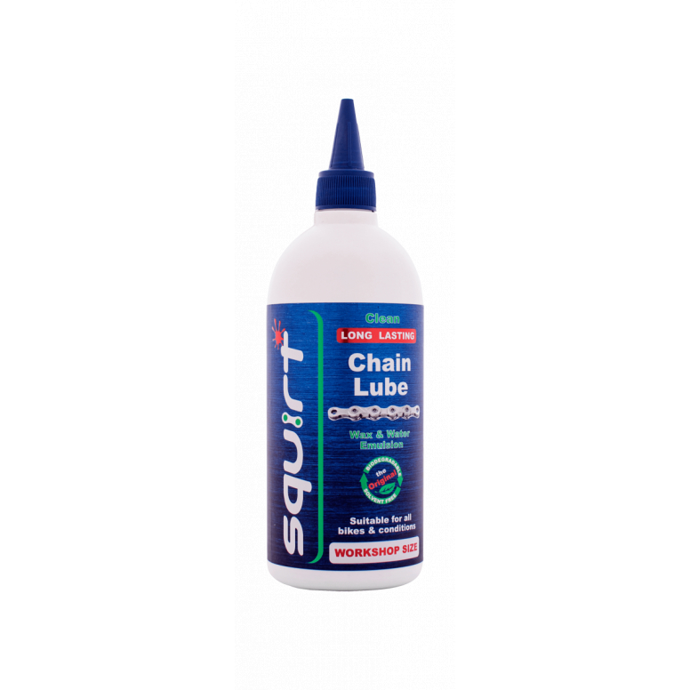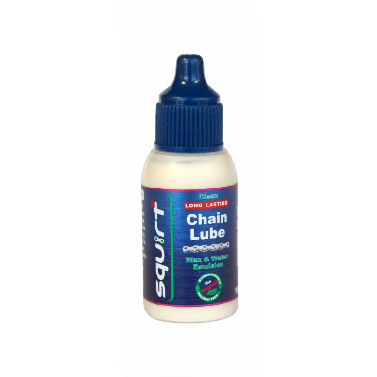 Squirt is a unique chain lubricant †it contains waxes and water in emulsion form that stays clean, lasts long and extends drive train life.Squirt's wax-based formula is ideal for all types of bicycle chains in all types of conditions. From e-bikes to road and mountain bikes, from sunshine to snow, Squirt is developed to give better lubrication, last longer and keep the chain cleaner over longer distances.Promotes a clean, smooth-running chain that repels dirt.Improved shifting and no chain-suckExtends the life of your drivetrainIncreased drivetrain efficiency up to 5 watts 100% biodegradableEasy to apply