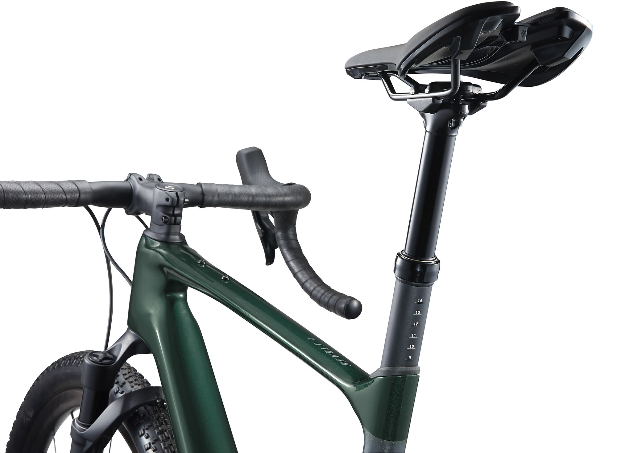 Composite frameset is designed specifically for front suspension. With 40mm of travel, the fork absorbs impacts so you can ride smoother and faster on rugged gravel and dirt.