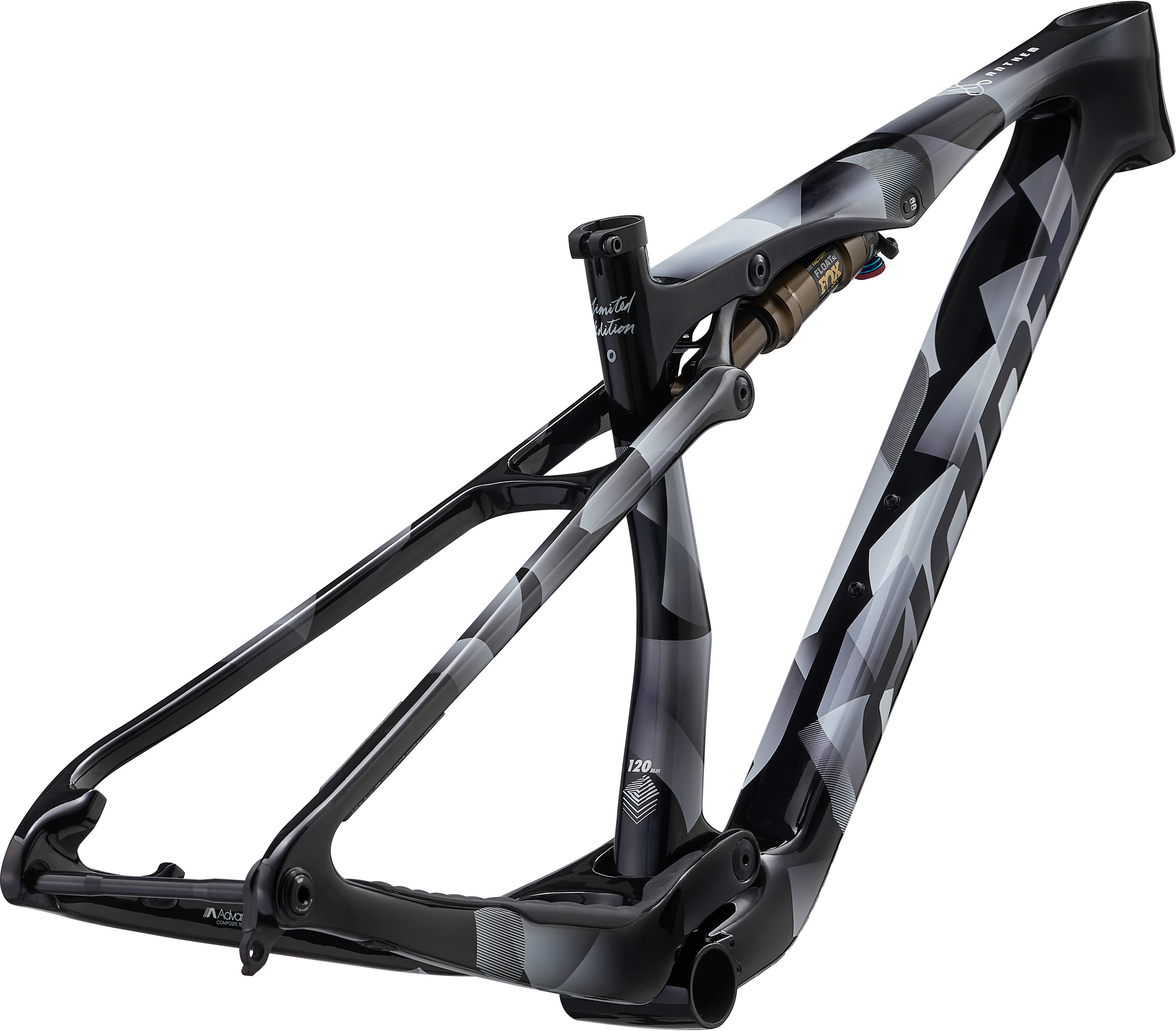 A fully reengineered composite frameset with best-in-class transmission stiffness helps you power up climbs and make every watt count. The frameset includes the same Fox Factory Float SL rear shock and tuning used by Hatherly to win the XCO world title. It comes with a Fox Twin-Stick Lever, a combined remote to control both the cable suspension lockout and dropper seatpost. The shock is semi-integrated into the top tube, shaving weight and creating space for a second water bottle cage.
