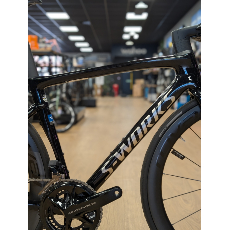 The S-Works Tarmac SL7 - Shimano Dura-Ace Di2 - EX DISPLAY 52 GLOSS BLACK PEARL GRANITE OVER CARBON / CHROME is available at the following locations.