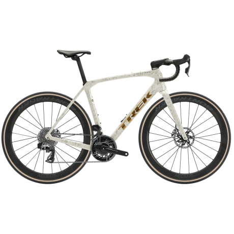 Domane SLR 9 AXS is Trek's top-of-the-line, ultralight carbon endurance road bike decked out with the best parts for a fast, high-performance ride. You get Trek's highest-level OCLV Carbon frame with rear IsoSpeed, SRAMs new RED AXS electronic drivetrain and OCLV Carbon wheels. Plus, it has an easy-access storage compartment for stowing ride essentials, and versatile 38c tyre clearance to keep you floating on rough roads and light gravel. You want a seriously capable bike on the tarmac that doesn't back down from endurance race days, and you're not willing to settle for less. You're looking for the most advanced endurance road bike frame Trek offer, with the added benefit of a wireless electronic SRAM RED AXS drivetrain for fast, precision shifting in any condition. An ultra-light and refined 800 Series OCLV Carbon frame and fork with rear IsoSpeed, integrated internal storage and top tube mounts. Its equipped with a SRAM RED AXS wireless electronic drivetrain, power meter cranks for monitoring performance metrics, powerful flat-mount disc brakes, Aeolus RSL 51 carbon wheels and a Bontrager Aero Pro handlebar. Domane SLR 9 AXS delivers Trek's highest-end Domane carbon frame and race-ready parts like the SRAM RED wireless drivetrain. You're getting tech that provides a real advantage in comfort, reliability and speed during long races, all-day adventures and competitive group rides.